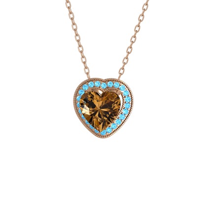 Dumanlı kuvars ve akuamarin 18 ayar rose altın kolye (40 cm rose altın rolo zincir)