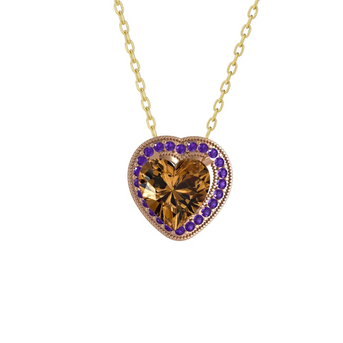 Dumanlı kuvars ve ametist 8 ayar rose altın kolye (40 cm altın rolo zincir)