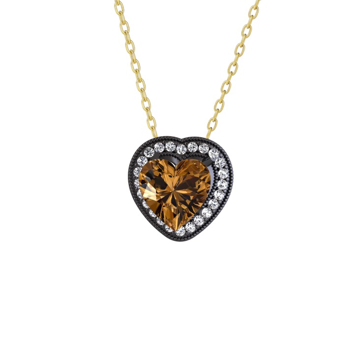 Dumanlı kuvars ve pırlanta 925 ayar siyah rodyum kaplama gümüş kolye (0.264 karat, 40 cm altın rolo zincir)
