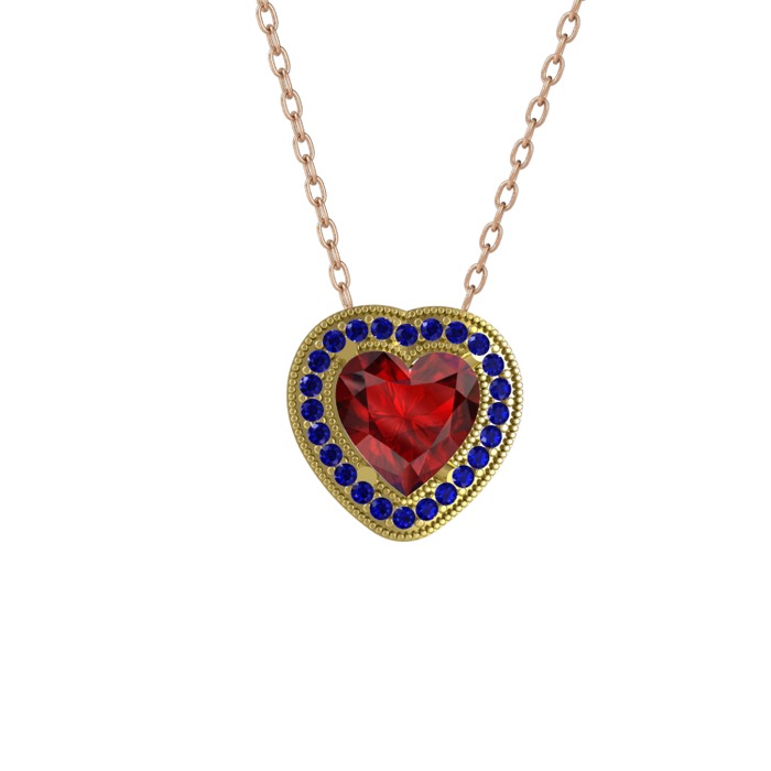 Garnet ve lab safir 8 ayar altın kolye (40 cm rose altın rolo zincir)