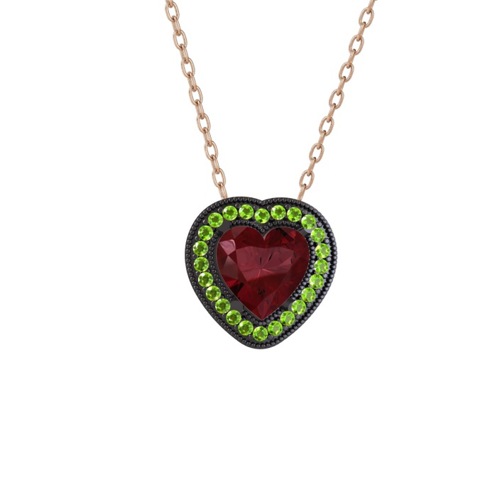 Kök yakut ve peridot 925 ayar siyah rodyum kaplama gümüş kolye (40 cm rose altın rolo zincir)