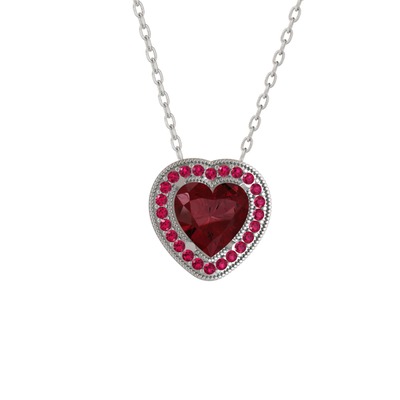 Kök yakut ve rodolit garnet 14 ayar beyaz altın kolye (40 cm beyaz altın rolo zincir)