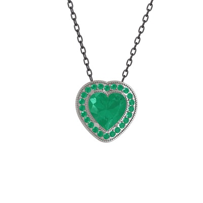 Kök zümrüt 18 ayar beyaz altın kolye (40 cm gümüş rolo zincir)