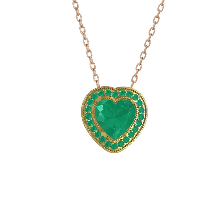 Kök zümrüt 8 ayar altın kolye (40 cm rose altın rolo zincir)