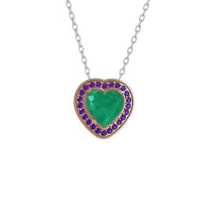 Kök zümrüt ve ametist 14 ayar rose altın kolye (40 cm beyaz altın rolo zincir)