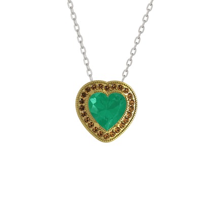 Kök zümrüt ve dumanlı kuvars 18 ayar altın kolye (40 cm beyaz altın rolo zincir)