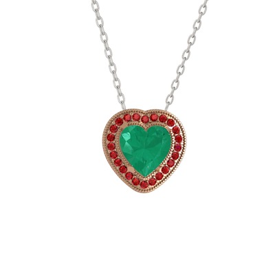 Kök zümrüt ve garnet 925 ayar rose altın kaplama gümüş kolye (40 cm beyaz altın rolo zincir)