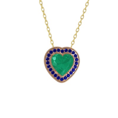 Kök zümrüt ve lab safir 925 ayar rose altın kaplama gümüş kolye (40 cm gümüş rolo zincir)