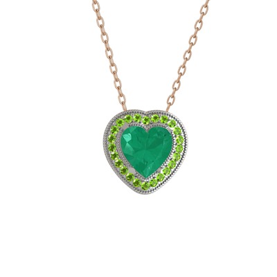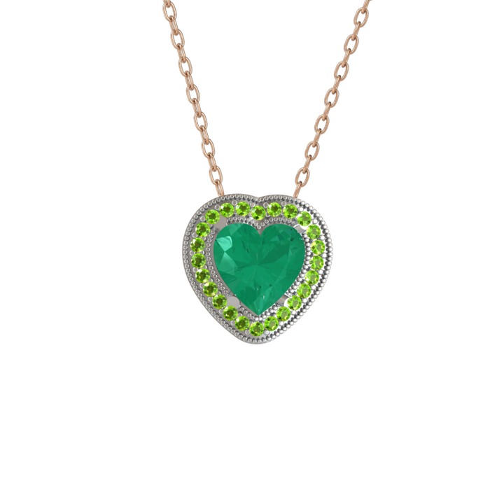 Kök zümrüt ve peridot 8 ayar beyaz altın kolye (40 cm rose altın rolo zincir)