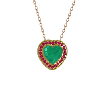 Kök zümrüt ve rodolit garnet 925 ayar altın kaplama gümüş kolye (40 cm rose altın rolo zincir)
