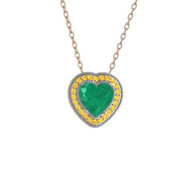 Kök zümrüt ve sitrin 8 ayar beyaz altın kolye (40 cm gümüş rolo zincir)