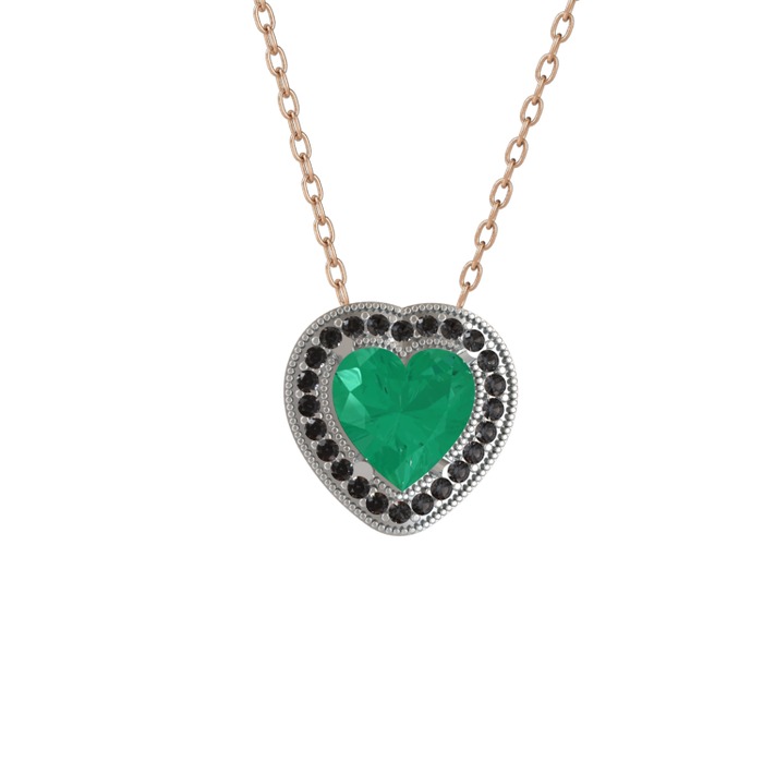 Kök zümrüt ve siyah zirkon 925 ayar gümüş kolye (40 cm rose altın rolo zincir)