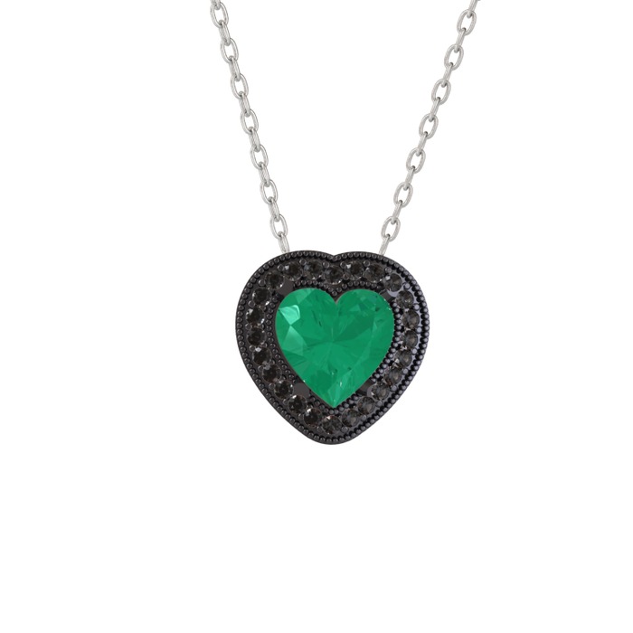 Kök zümrüt ve siyah zirkon 925 ayar siyah rodyum kaplama gümüş kolye (40 cm gümüş rolo zincir)