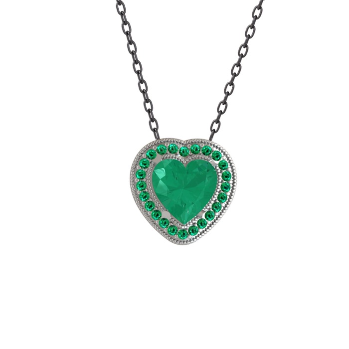 Kök zümrüt ve yeşil kuvars 18 ayar beyaz altın kolye (40 cm gümüş rolo zincir)