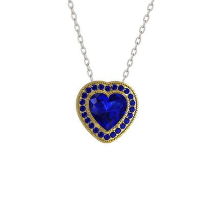 Lab safir 18 ayar altın kolye (40 cm beyaz altın rolo zincir)