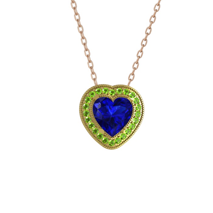 Lab safir ve peridot 14 ayar altın kolye (40 cm rose altın rolo zincir)