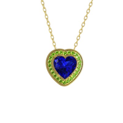 Lab safir ve peridot 925 ayar altın kaplama gümüş kolye (40 cm altın rolo zincir)