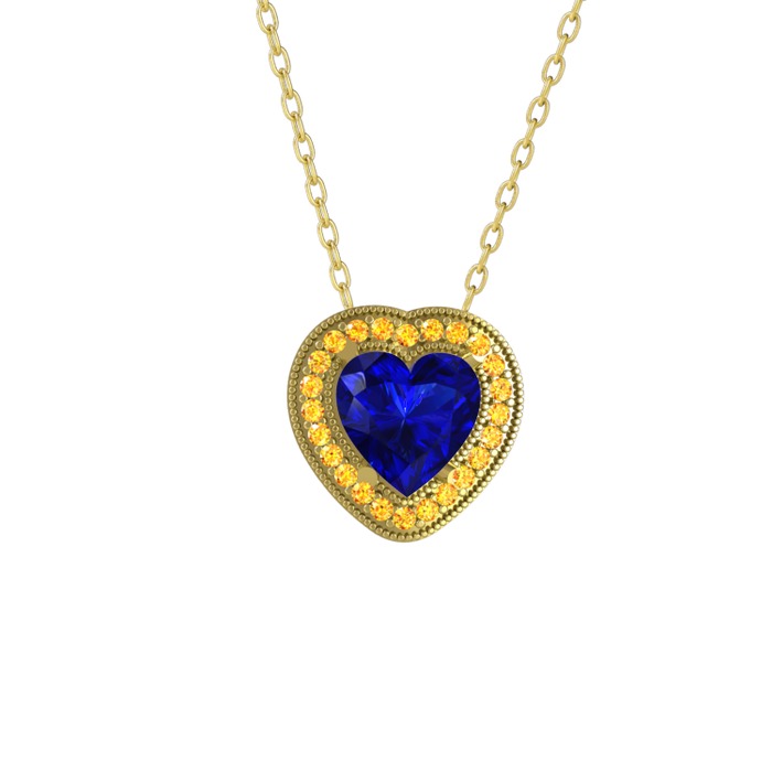 Lab safir ve sitrin 18 ayar altın kolye (40 cm gümüş rolo zincir)