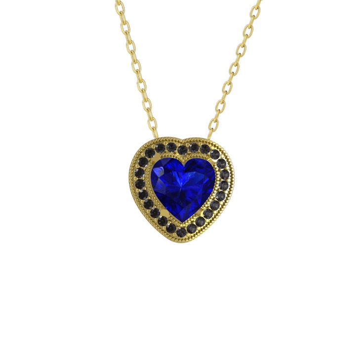 Lab safir ve siyah zirkon 8 ayar altın kolye (40 cm altın rolo zincir)