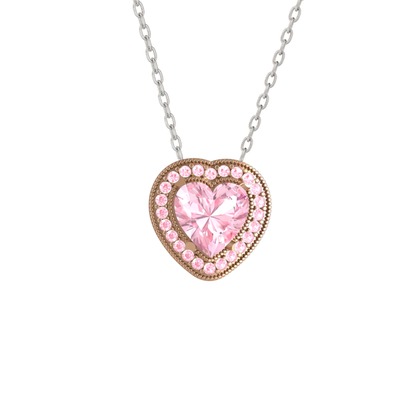 Pembe kuvars 18 ayar rose altın kolye (40 cm gümüş rolo zincir)