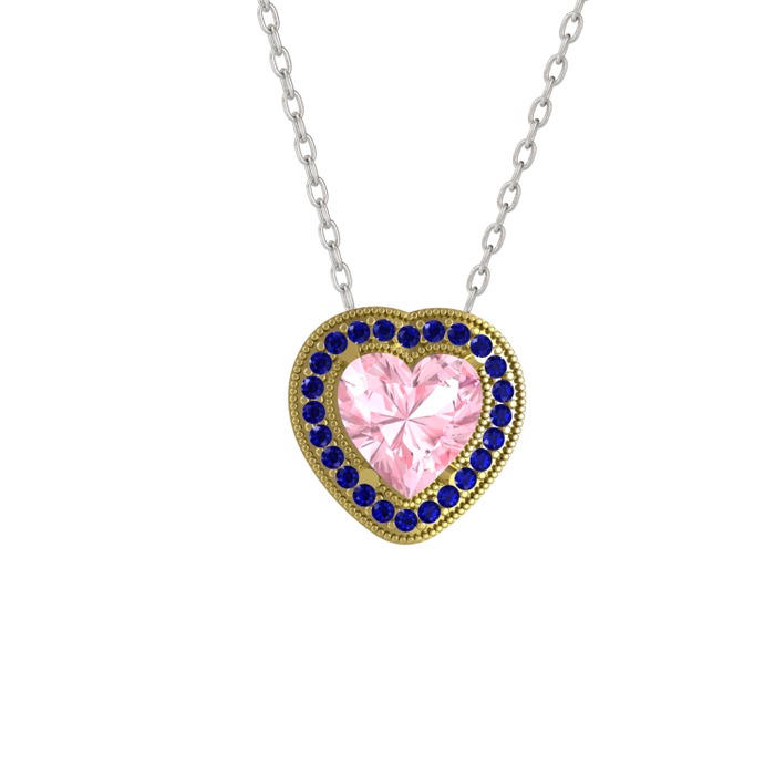 Pembe kuvars ve lab safir 18 ayar altın kolye (40 cm beyaz altın rolo zincir)