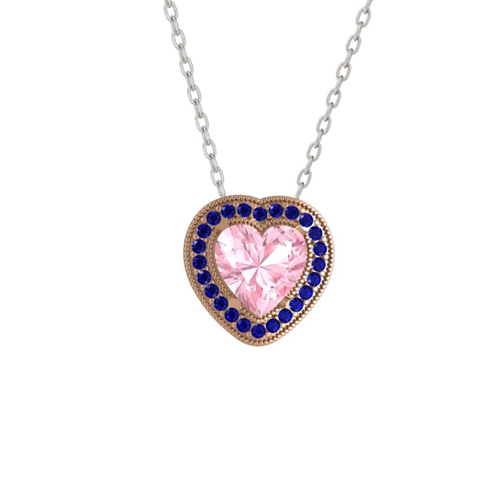 Pembe kuvars ve lab safir 18 ayar rose altın kolye (40 cm beyaz altın rolo zincir)