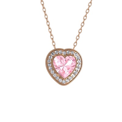 Pembe kuvars ve pırlanta 18 ayar rose altın kolye (0.264 karat, 40 cm rose altın rolo zincir)