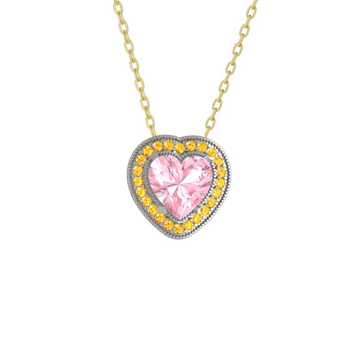 Pembe kuvars ve sitrin 925 ayar gümüş kolye (40 cm altın rolo zincir)