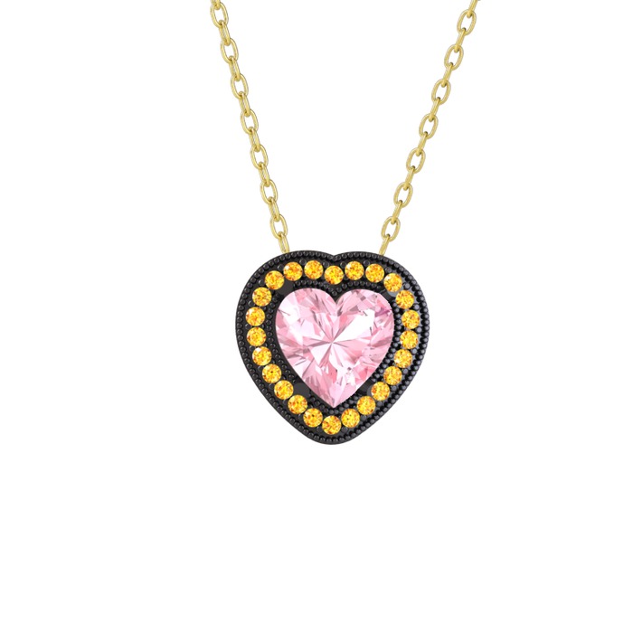Pembe kuvars ve sitrin 925 ayar siyah rodyum kaplama gümüş kolye (40 cm gümüş rolo zincir)