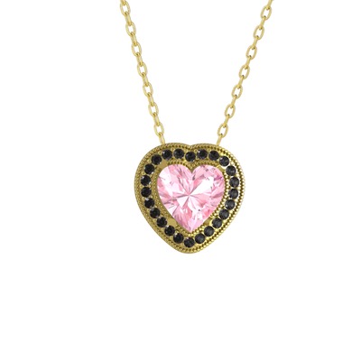 Pembe kuvars ve siyah zirkon 925 ayar altın kaplama gümüş kolye (40 cm altın rolo zincir)
