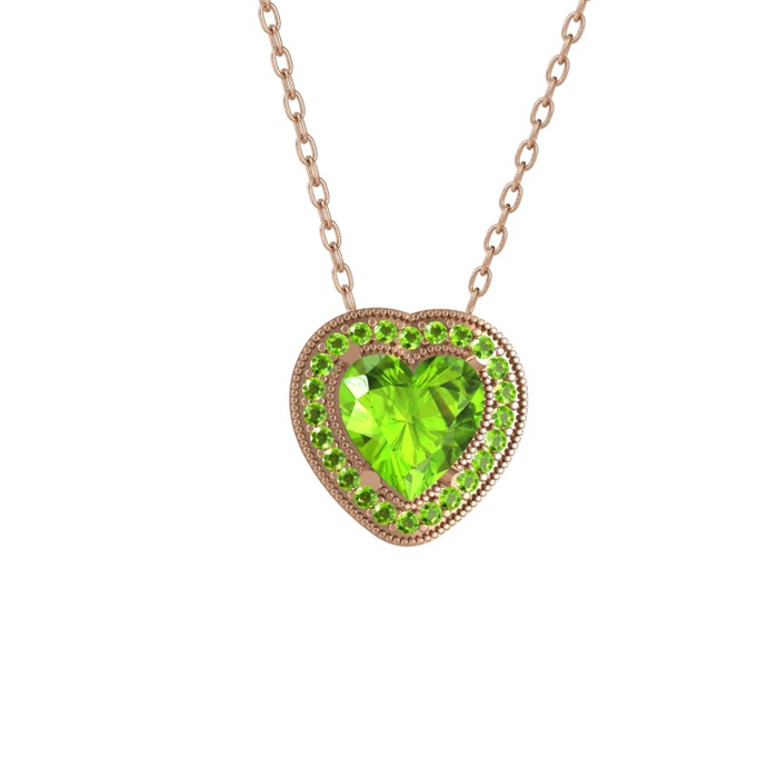 Peridot 18 ayar rose altın kolye (40 cm rose altın rolo zincir)