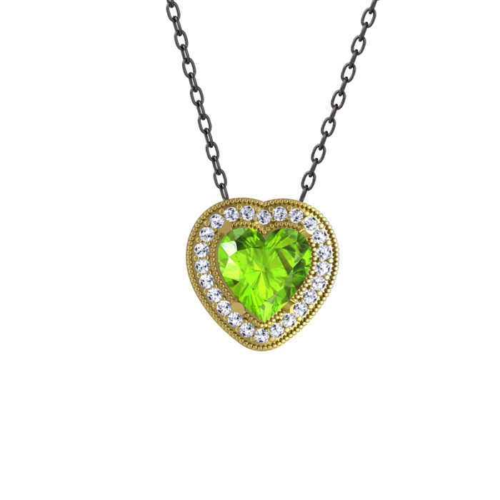 Peridot ve beyaz zirkon 8 ayar altın kolye (40 cm gümüş rolo zincir)