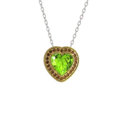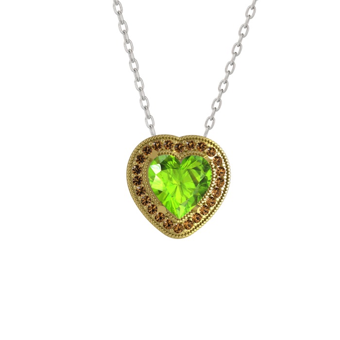 Peridot ve dumanlı kuvars 18 ayar altın kolye (40 cm beyaz altın rolo zincir)