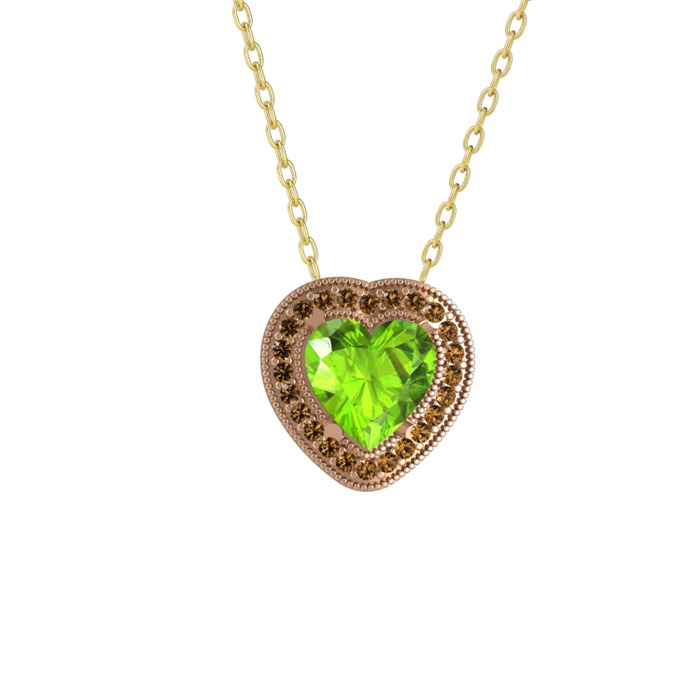 Peridot ve dumanlı kuvars 18 ayar rose altın kolye (40 cm altın rolo zincir)
