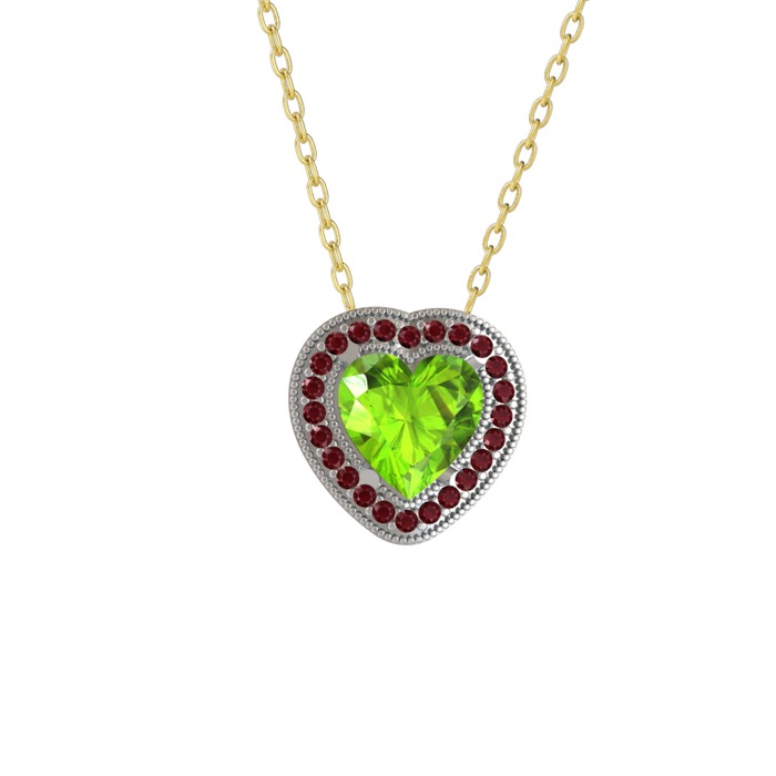 Peridot ve kök yakut 925 ayar gümüş kolye (40 cm altın rolo zincir)