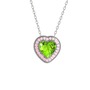 Peridot ve pembe kuvars 18 ayar beyaz altın kolye (40 cm gümüş rolo zincir)