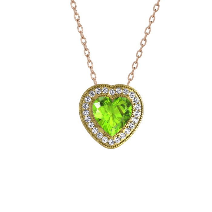 Peridot ve pırlanta 18 ayar altın kolye (0.264 karat, 40 cm rose altın rolo zincir)