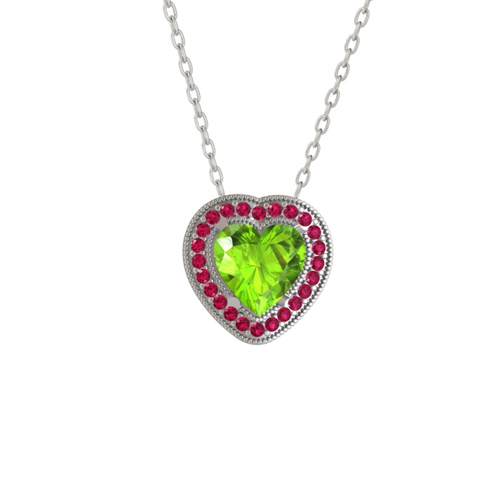 Peridot ve rodolit garnet 14 ayar beyaz altın kolye (40 cm beyaz altın rolo zincir)