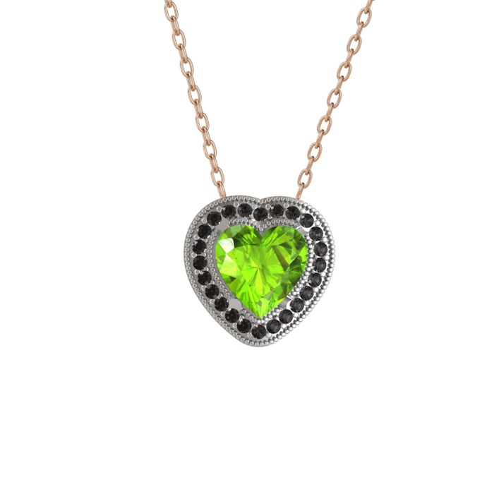 Peridot ve siyah zirkon 18 ayar beyaz altın kolye (40 cm rose altın rolo zincir)