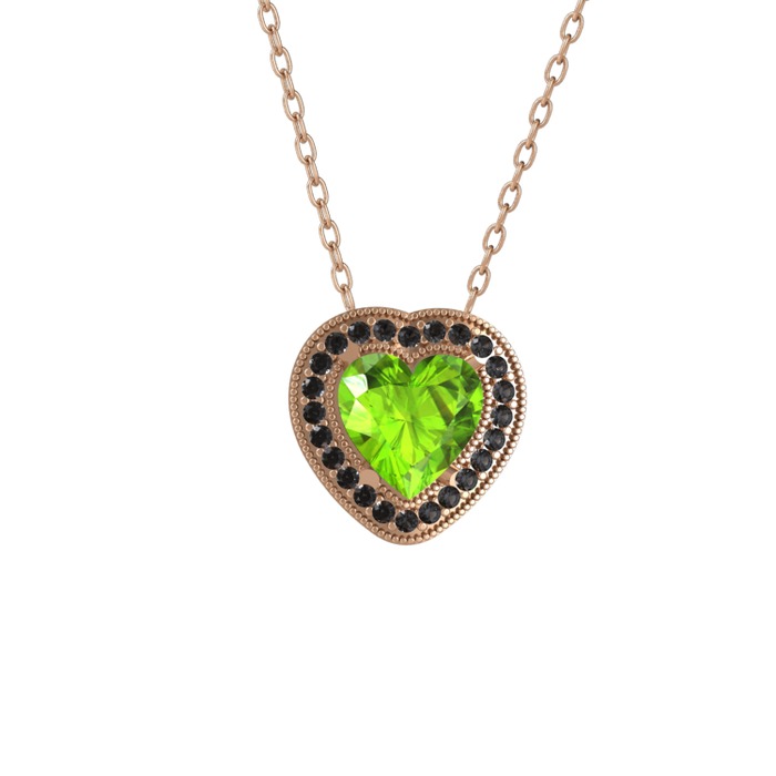 Peridot ve siyah zirkon 18 ayar rose altın kolye (40 cm gümüş rolo zincir)