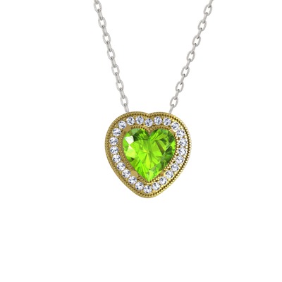 Peridot ve swarovski 8 ayar altın kolye (40 cm beyaz altın rolo zincir)