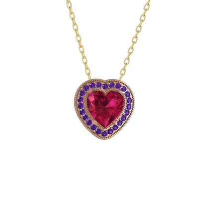 Rodolit garnet ve ametist 14 ayar rose altın kolye (40 cm altın rolo zincir)