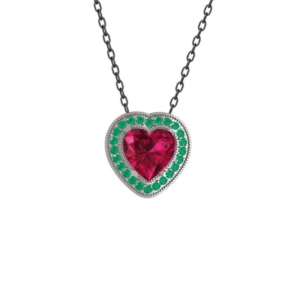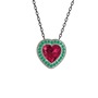 Rodolit garnet ve kök zümrüt 18 ayar beyaz altın kolye (40 cm gümüş rolo zincir)