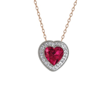 Rodolit garnet ve pırlanta 14 ayar beyaz altın kolye (0.264 karat, 40 cm gümüş rolo zincir)