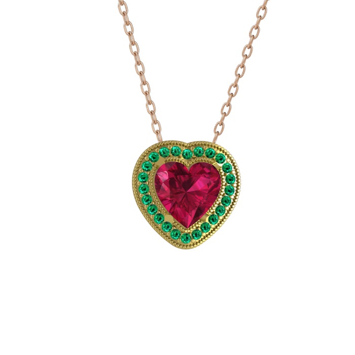 Rodolit garnet ve yeşil kuvars 18 ayar altın kolye (40 cm rose altın rolo zincir)