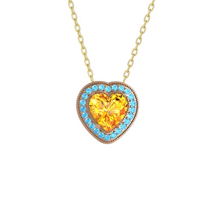 Sitrin ve akuamarin 8 ayar rose altın kolye (40 cm altın rolo zincir)