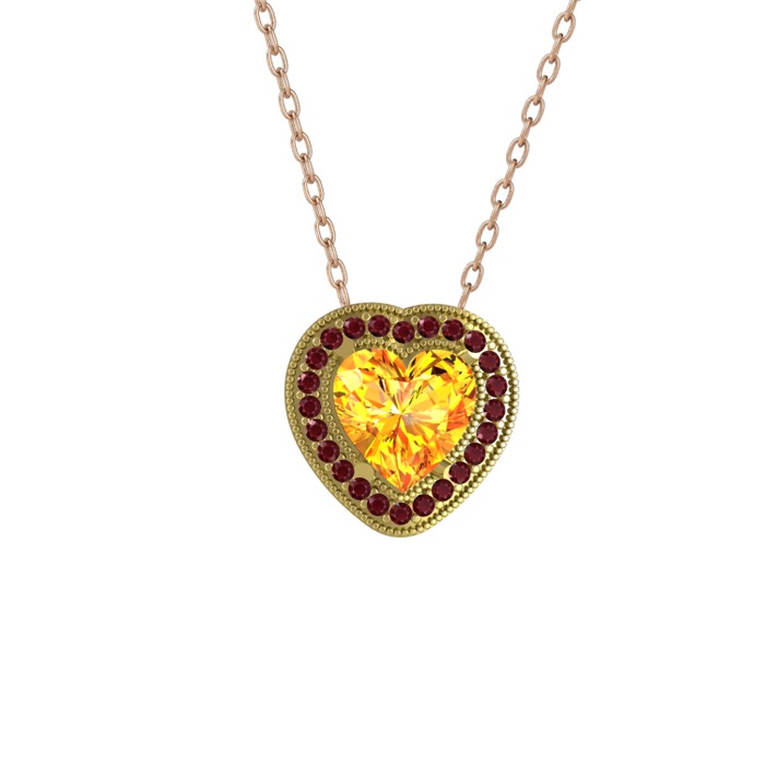 Sitrin ve kök yakut 14 ayar altın kolye (40 cm gümüş rolo zincir)