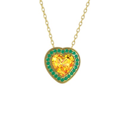 Sitrin ve kök zümrüt 925 ayar altın kaplama gümüş kolye (40 cm altın rolo zincir)