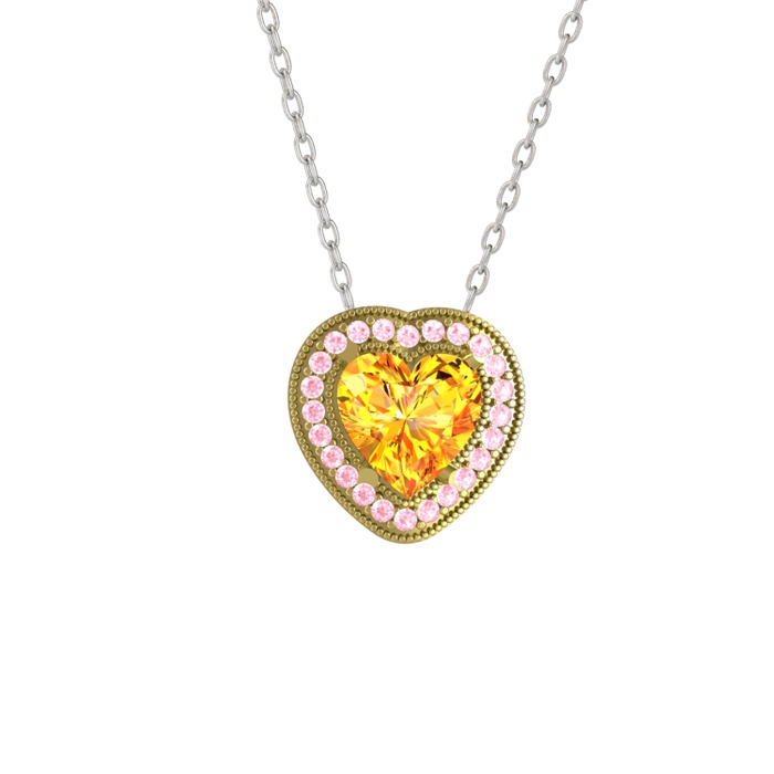 Sitrin ve pembe kuvars 8 ayar altın kolye (40 cm beyaz altın rolo zincir)
