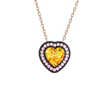 Sitrin ve pembe kuvars 925 ayar siyah rodyum kaplama gümüş kolye (40 cm rose altın rolo zincir)